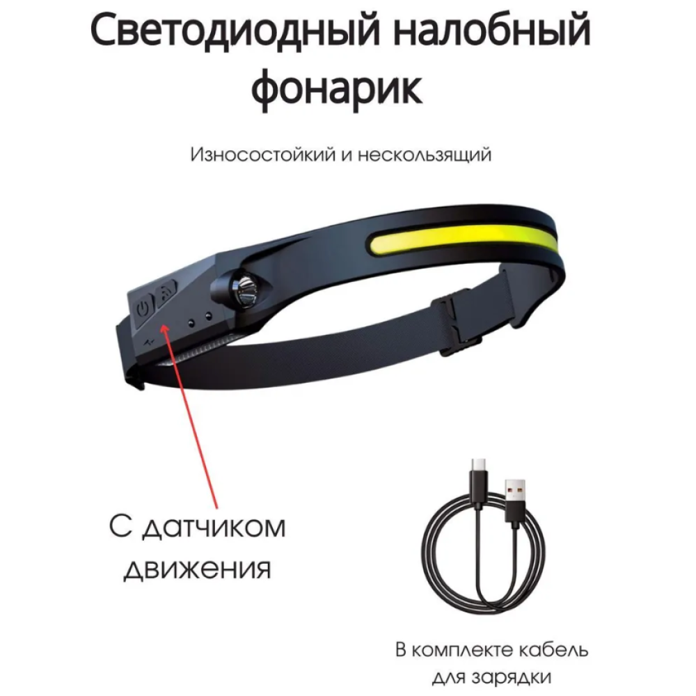 Lanternă frontală ușoară și compactă pentru sport, pescuit, camping etc. Are două surse de lumină: LED XPE mai direcționat și LED COB cu un unghi larg de iluminare. Puterea lanternei este de 350 lumeni. Soclu încorporat pentru încărcare de tip USB type-c. Bateria nu trebuie cumpărată separat, este integrată, cu o capacitate de 1200mAh. Prezența senzorului de pornire permite utilizarea lanternei fără contact.