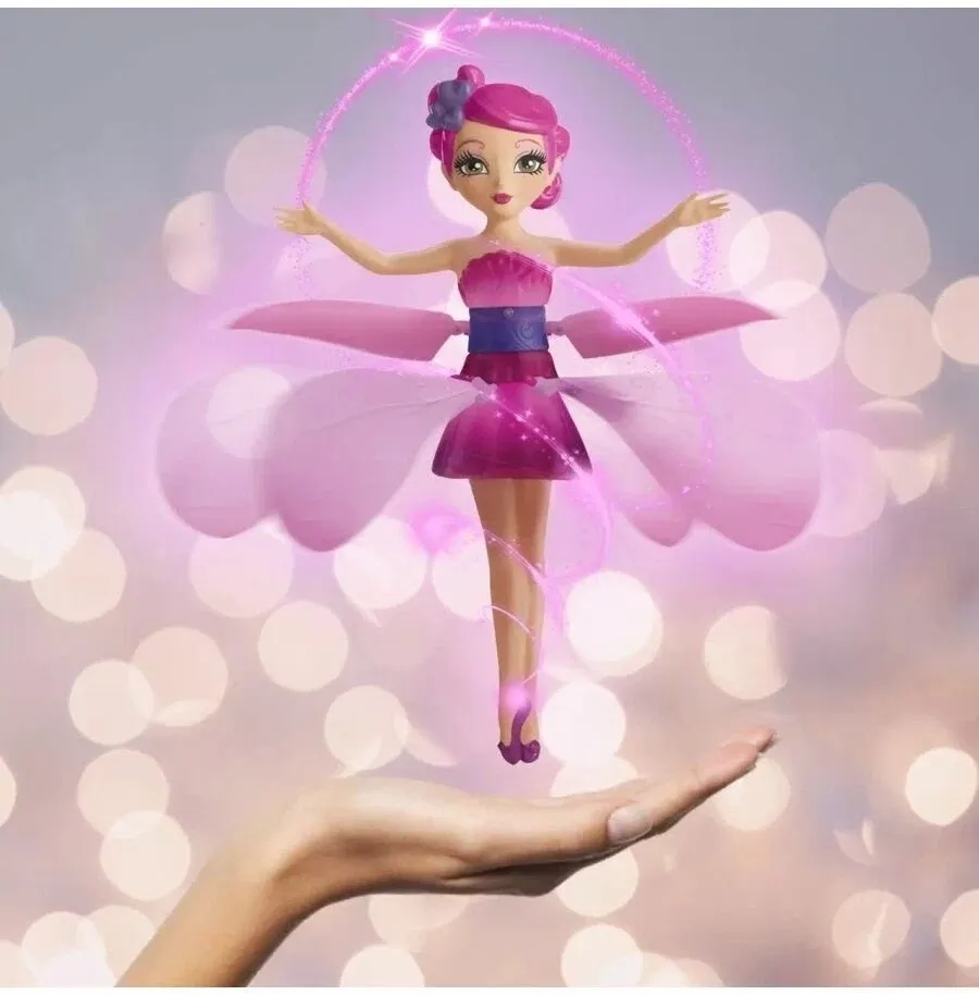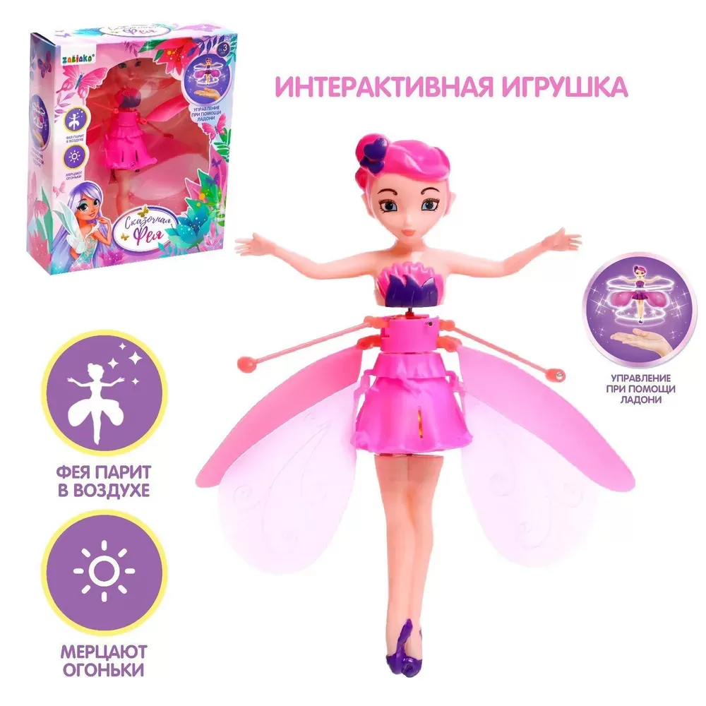 Este suficient să porniți butonul de pe placa electronică și după 3 secunde păpușa va decola. Zâna poate fi controlată apropiind palma: senzorul reacționează la prezența mâinii, iar păpușa se va ridica mai sus. Cu cât mâna este mai sus, cu atât zborul este mai înalt. Coborând palma, puteți reduce înălțimea zborului zânei magice.