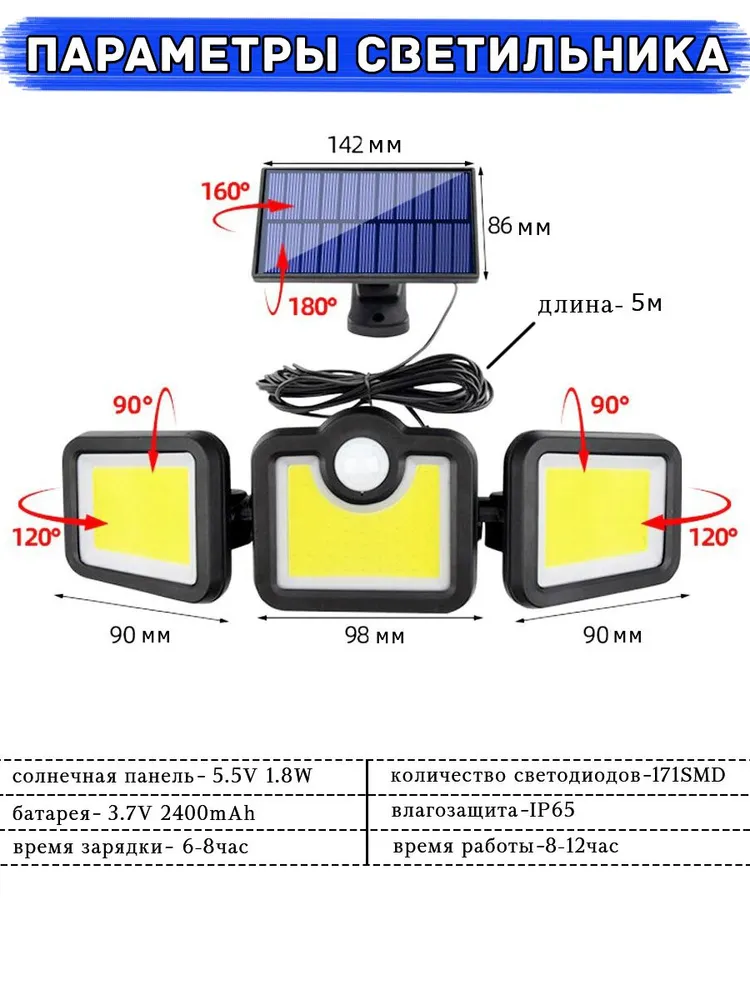 Технологии будущего - это солнечная энергия! Настенный светильник на солнечной батарее сплит-системы JY1725B — светильник с датчиком движения, оснащен солнечной панелью и питается исключительно от энергии солнца! Всё, что от вас требуется - это закрепить светильник там, где вам необходимо, с помощью шурупов, которые идут в комплекте, никаких проводов и сложной электрической схемы!